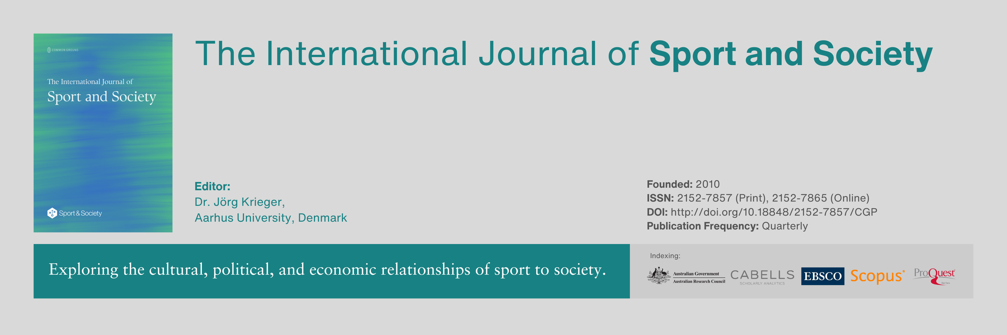 The International Journal of Sport and Society is brought together around a common interest in cultural, political, and economic relationships of sport to society. We seek to build an epistemic community to make linkages across disciplinary, geographic, and cultural boundaries. The journal is defined by our Research Network scope and concerns and motivated to build strategies for action framed by our shared themes and tensions.